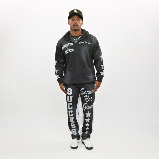 SaleBlack- "Success is Earned Not Given" Zip Up Hoodie Only