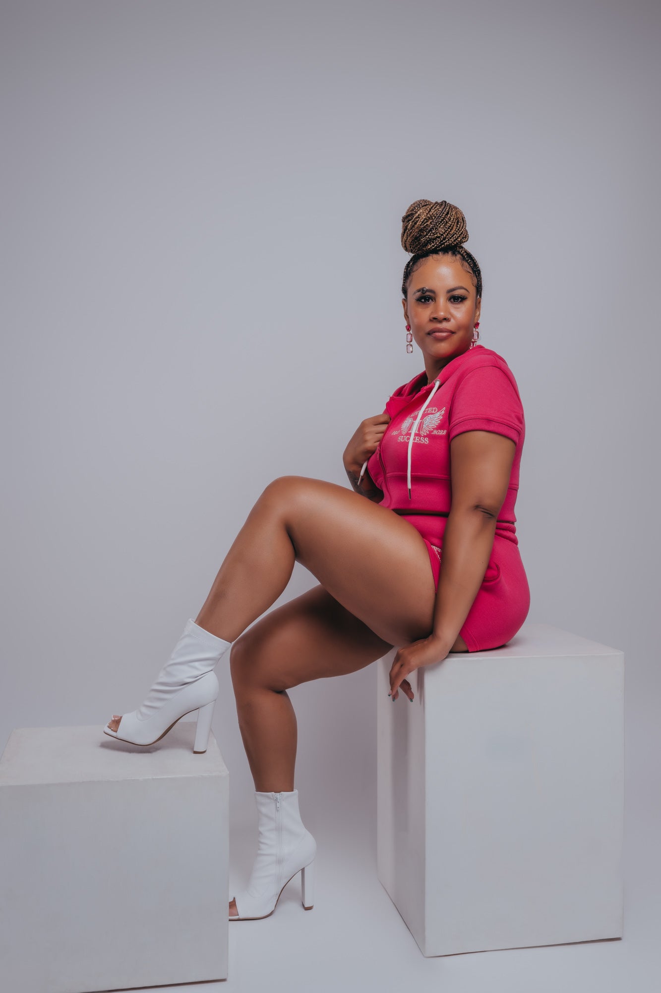 -Hot Pink/White Crop Top Short set!!